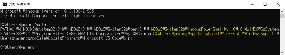 cmd 에서 PATH 명령어를 실행하여 python 설치 경로를 확인한다.