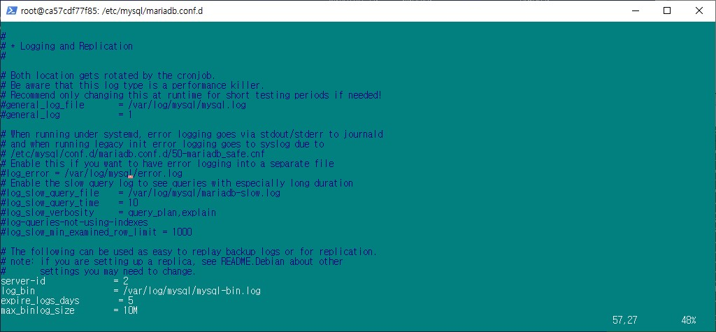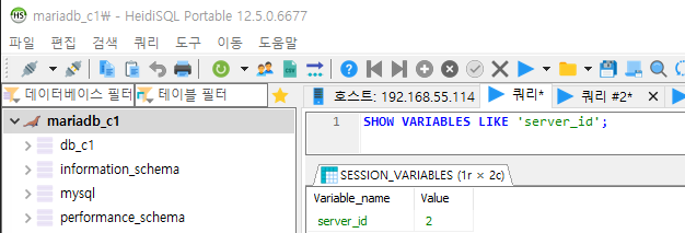 이번에는 mariadb_c1에 replication master 설정이 되고 mariadb_c0에 slave 설정이 추가된다고 보면 되겠다.